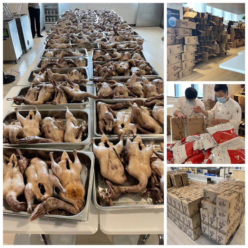 近日來,中山大廈精品酒店接到兩批制作中秋鹽水鴨禮盒的訂單,精品酒店機關(guān)餐廳分管領(lǐng)導迅速召開生產(chǎn)會進行周密部署,機關(guān)餐廳班組所有員工齊心協(xié)力,迎難而上,共同協(xié)作完成了1066只鹽水鴨的制作、533盒的禮盒裝箱。