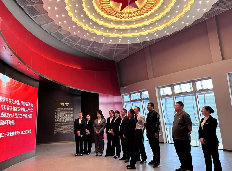步入憲法宣傳教育展廳,館內(nèi)陳列著各類憲法相關(guān)的歷史文獻(xiàn)、圖片和實物,深切的直觀的讓大家感受到了中國共產(chǎn)黨帶領(lǐng)中國人民尋憲、制憲、修憲、奉憲的偉大歷史進(jìn)程,生動展示了我國憲法的發(fā)展歷程和法治建設(shè)的輝煌成就。大家陸續(xù)參觀了旗陣廣場、宣誓廣場和憲法宣傳教育展廳,深度理解我國憲法的重要意義,深刻領(lǐng)悟憲法精神力量。